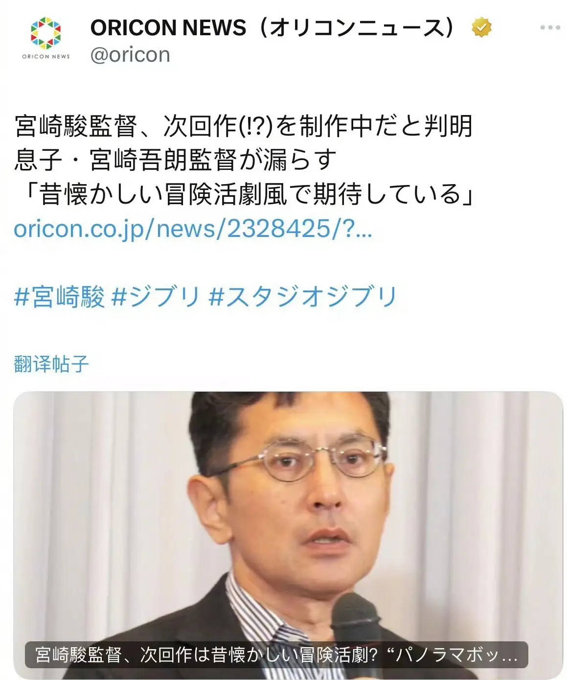 搜狐娱乐讯 据日媒报道,宫崎骏之子宫崎吾朗透露宫崎骏已经在准备下一部作品,新电影为怀旧冒险活剧风格,但他也不确定能否真的成为下一部作品。