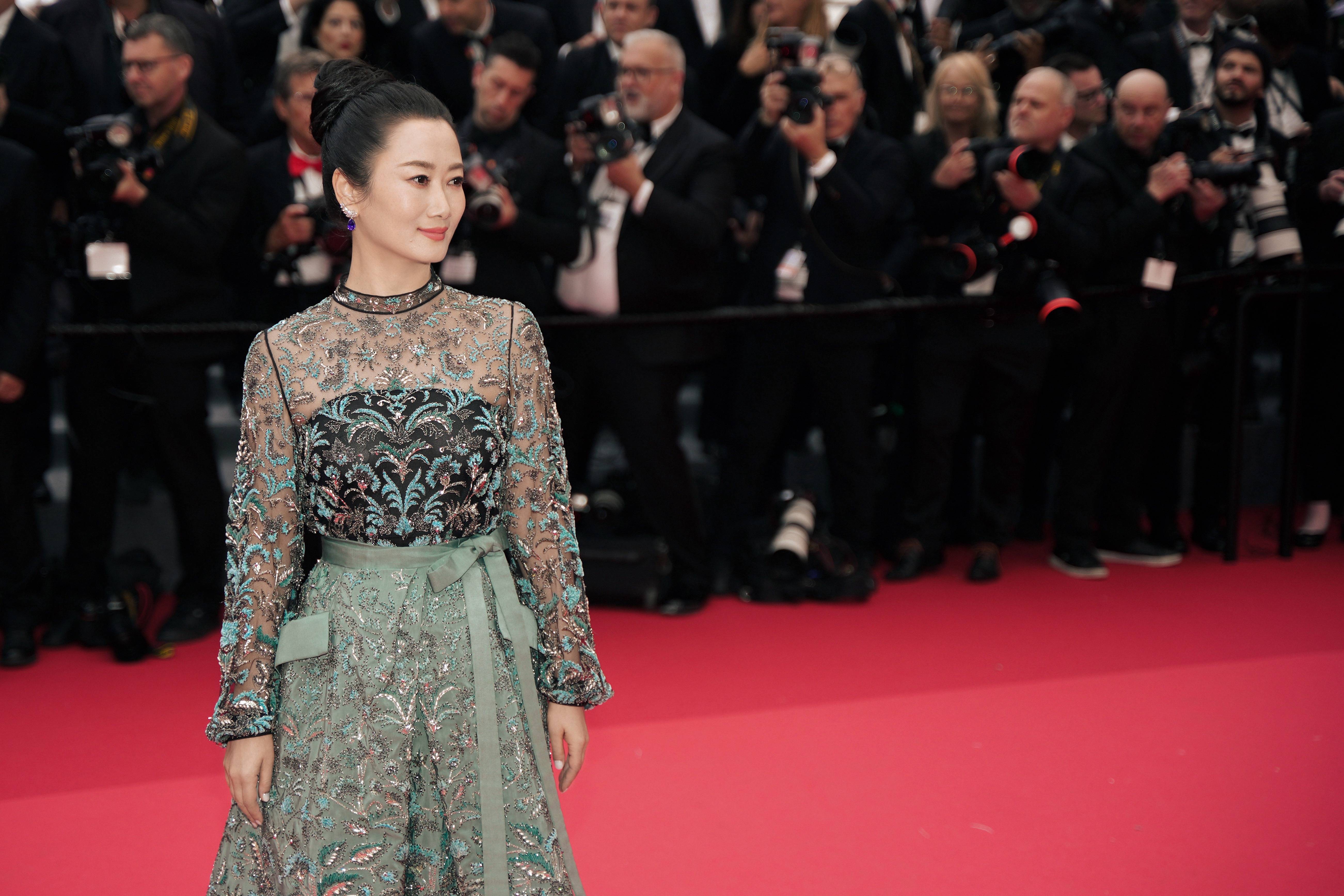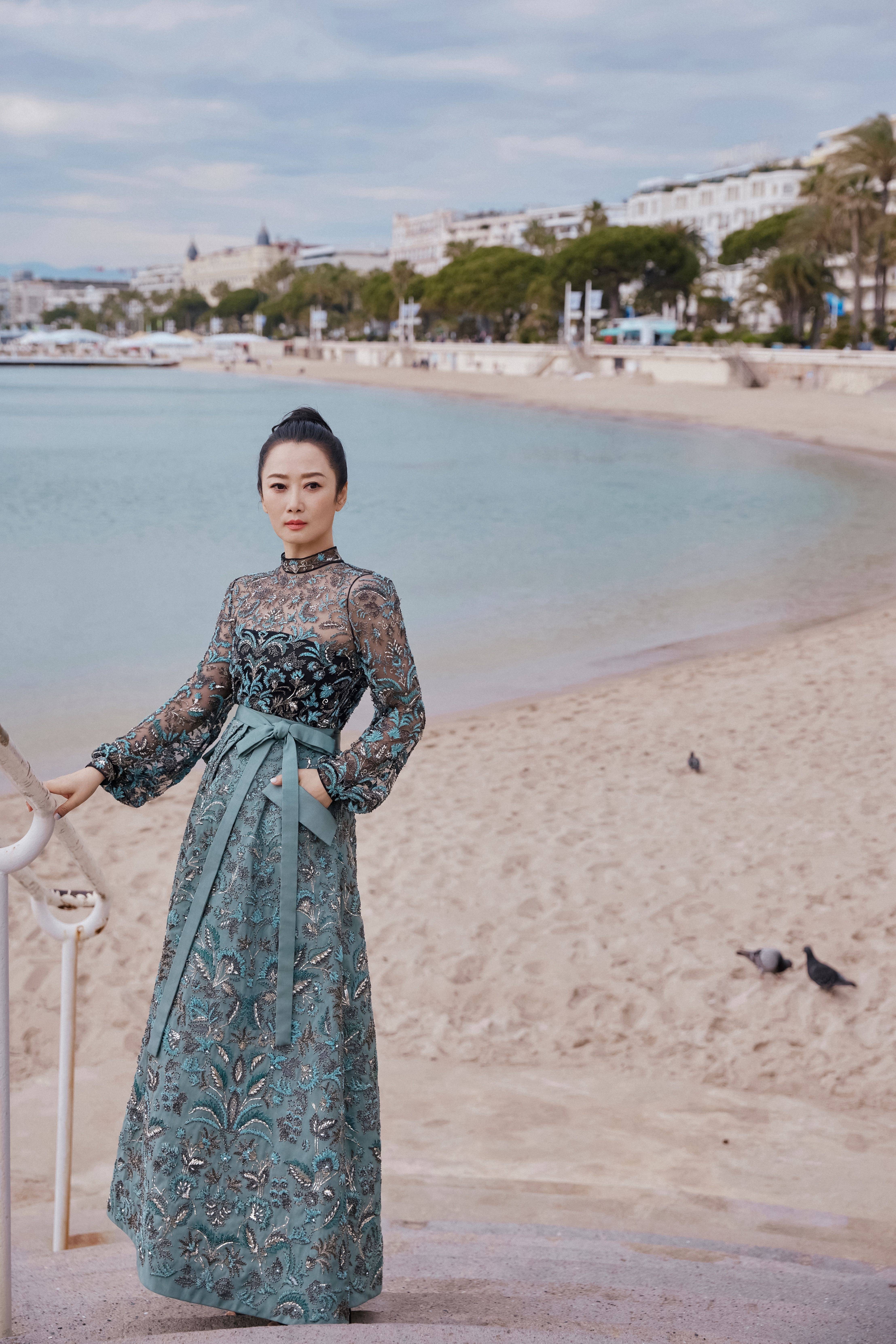 法国当地时间2024年5月14日,中国演员赵涛身着迪奥2024春夏高级定制系列薄纱刺绣礼服,搭配经典廓型云纹绸面料垂褶半裙,亮相第77届戛纳电影节开幕典礼及红毯,尽显女性飒爽魅力。开幕红毯上,电影节艺术总监蒂耶里·福茂主动走入人群欢迎赵涛,与她叙旧。