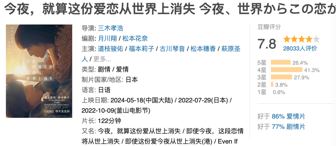 又一部日式的爱情片,这周日式爱情片确实有点扎堆。