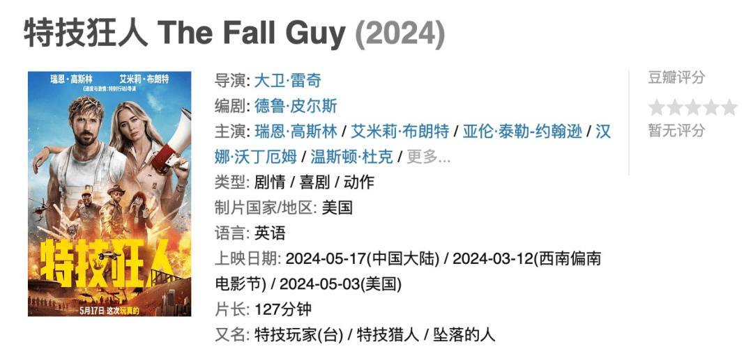 如今,他才刚因为意外受伤几乎被迫无法再从事特技表演,平凡的科尔特必须找到失踪的电影明星汤姆·赖德(亚伦·泰勒-约翰逊 Aaron Taylor-Johnson 饰)、破解一个阴谋,并且赢回他一生挚爱乔迪(艾米莉·布朗特 Emily Blunt 饰)的芳心,同时还要继续当一名特技演员。分身乏术、焦头烂额的他有可能一帆风顺吗?
