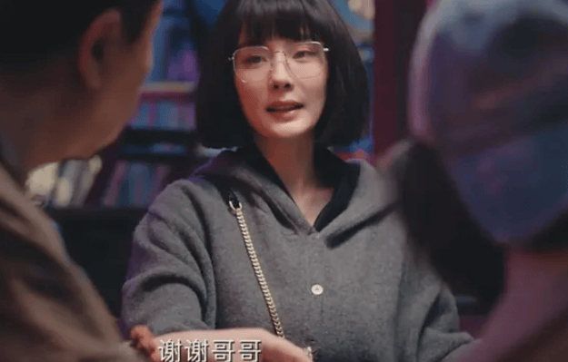 前期造型,她以娇弱眼镜小妹形象示人,看着就很楚楚可怜。