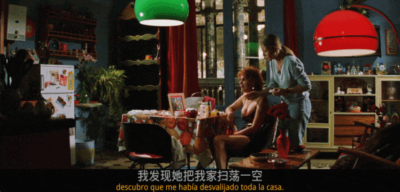 阿莫多瓦最爱用大块的明艳的色彩,铺在画面中。