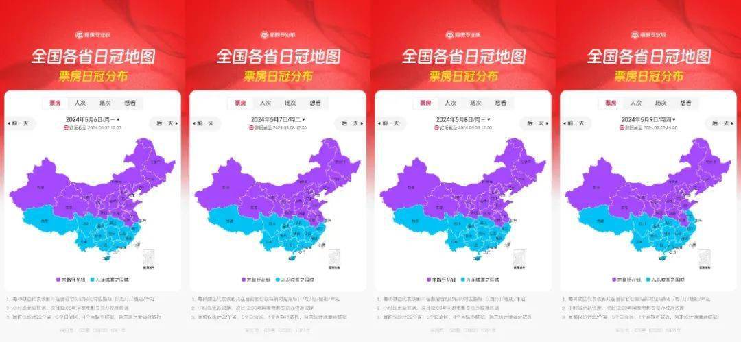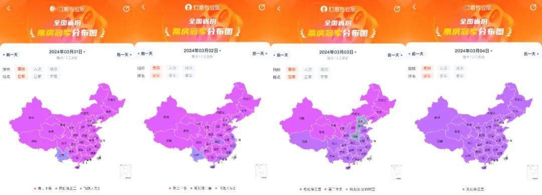 影片在上映第一天先是拿下上海市的票房冠军,第二天“插旗”福建、广东、海南、江苏、浙江、湖北,第三天扩散到华南、华中、华东地区,上映第四天就登顶全国各个省份地区的单日票房冠军,实现全覆盖。