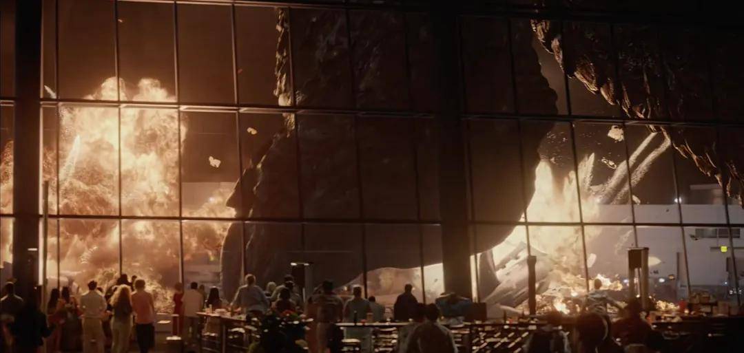 美版会用哥斯拉的脚与机场窗户里人的对比,显出它的高大;