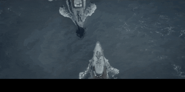 甚至船只“擦肩而过”的效果,都是依靠摄影机和实景静止来表现的。