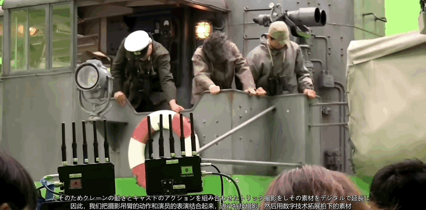 比如影片里的军舰和船舷都只做一部分,其他用CG技术扩展视觉效果。