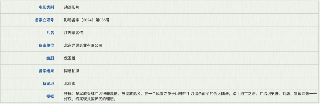 这部《江湖豪客传》将以禁军教头林冲为主角,讲述他被流放他乡,在一个风雪之夜于山神庙手刃追杀而至的仇人陆谦,踏上逃亡之路,并结识史进、刘唐、鲁智深等一干好汉,终实现报国护民的理想的故事。