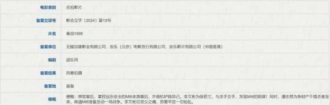 在3月举行的2024香港国际影视展上,博纳影业总裁于冬推介影片时表示,这个故事和很难写,要有足够丰富的史料和极具张力的戏剧冲突。