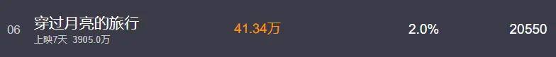 《火锅》上映五天五千万,张子枫、胡先煦主演的《穿过月亮的旅行》上映七天,还不到四千万,和《猪猪侠大电影·星际行动》票房差不多。
