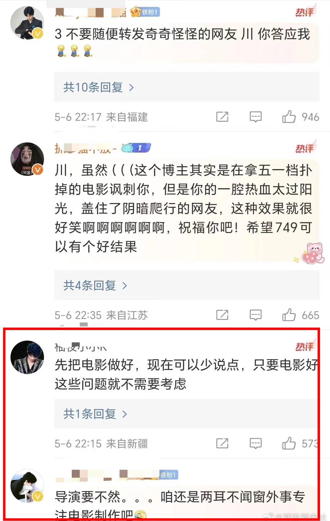 王俊凯的粉丝似乎在安慰陆川,先把电影做好,现在可以少说话,只要电影好这些问题就不需要考虑。也有人认为导演先不要理外边的说法,专心做好电影后期。