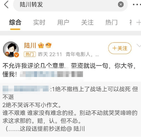 原标题:导演陆川转发“绝不撤档绝不认怂”言论!你怎么看待电影上映后又撤档行为?