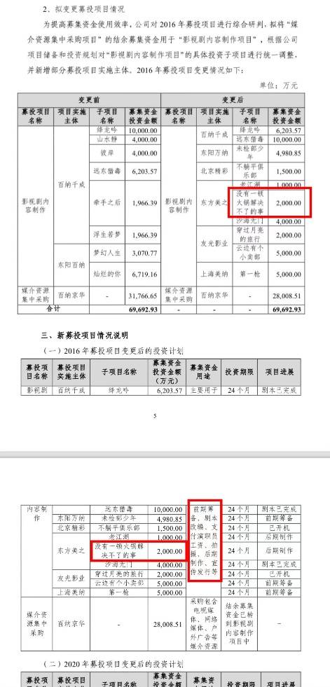 百纳千成公告曾披露,公司预计为《没有一顿火锅解决不了的事》投入2000万元,用于前期筹备、剧本改编、支付演职员工资、拍摄、后期制作、宣传发行等。