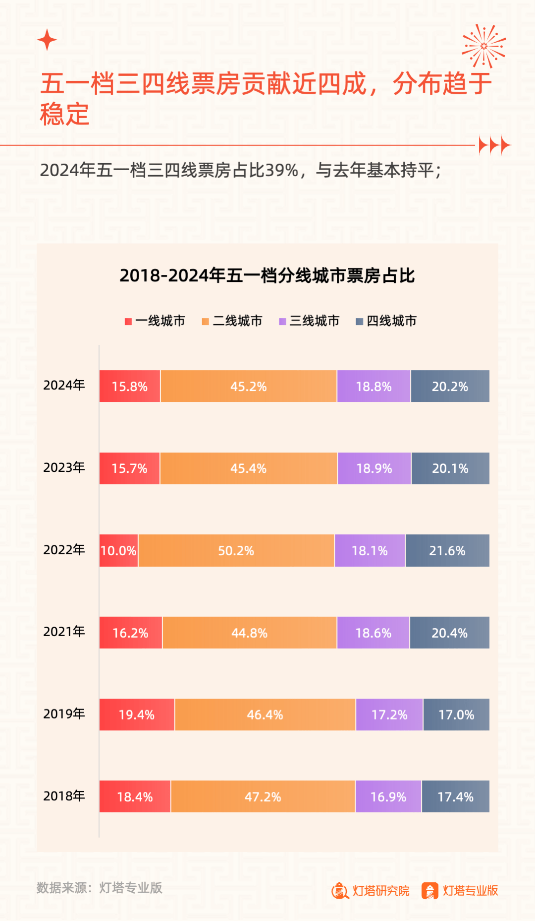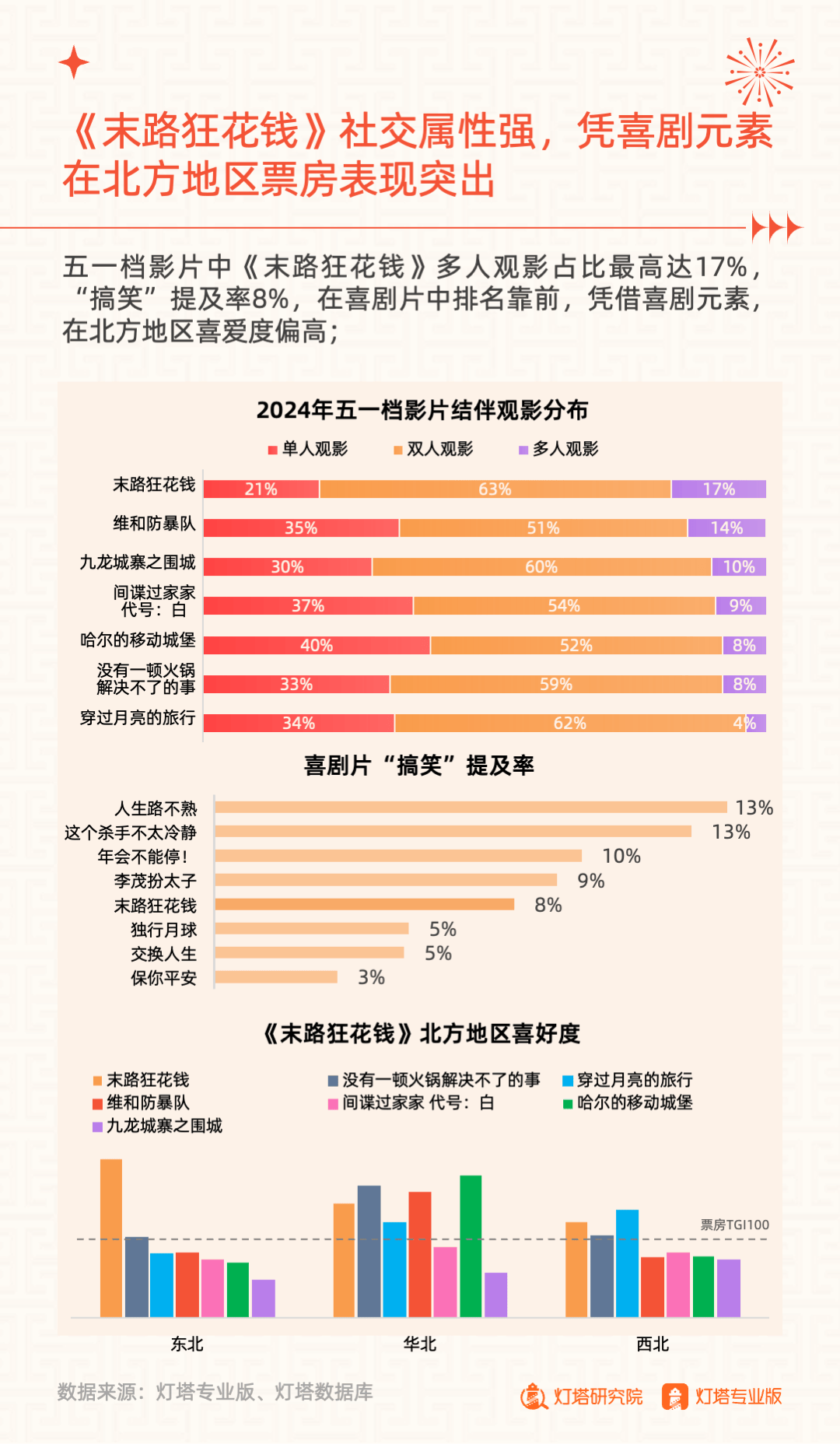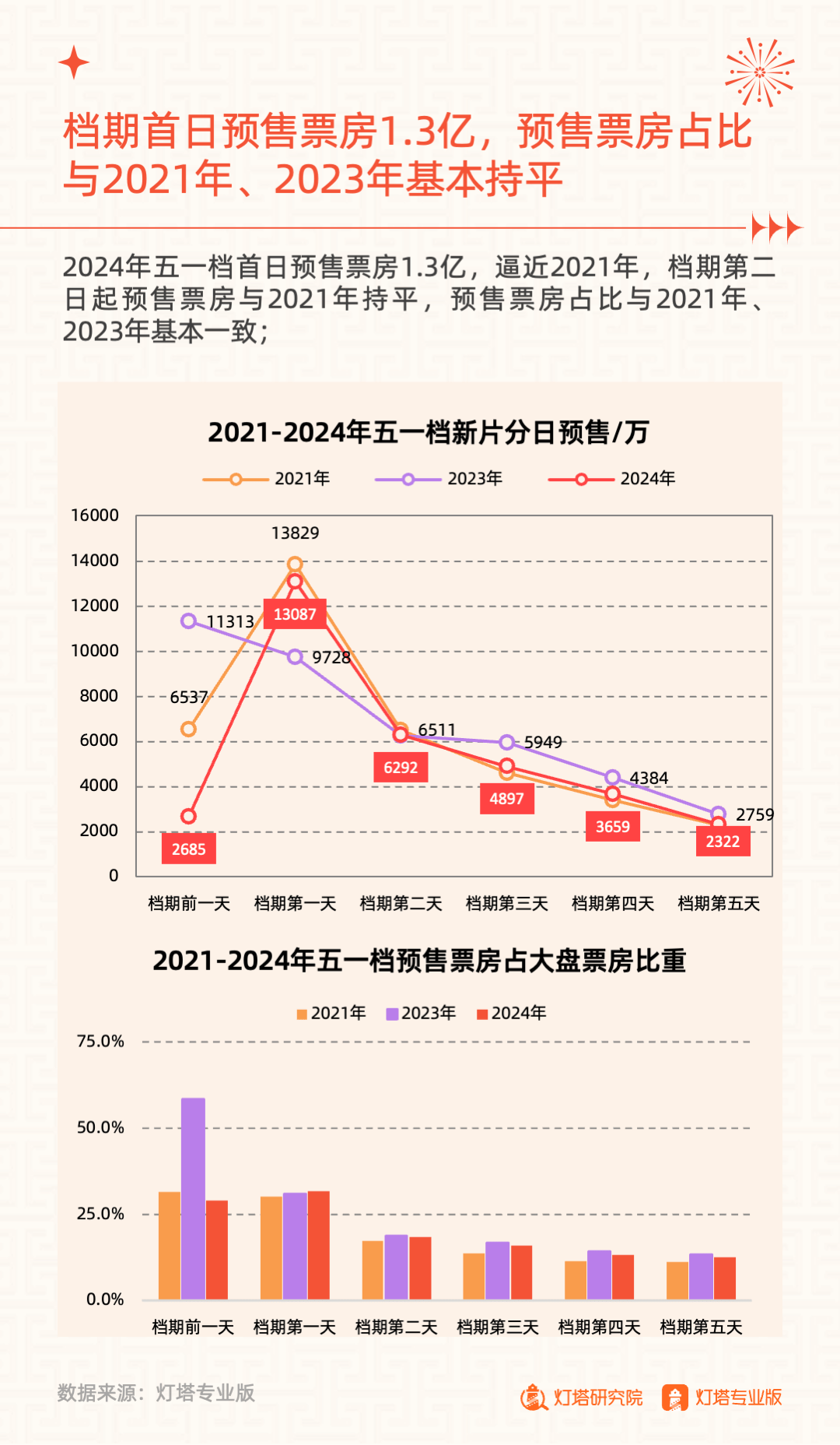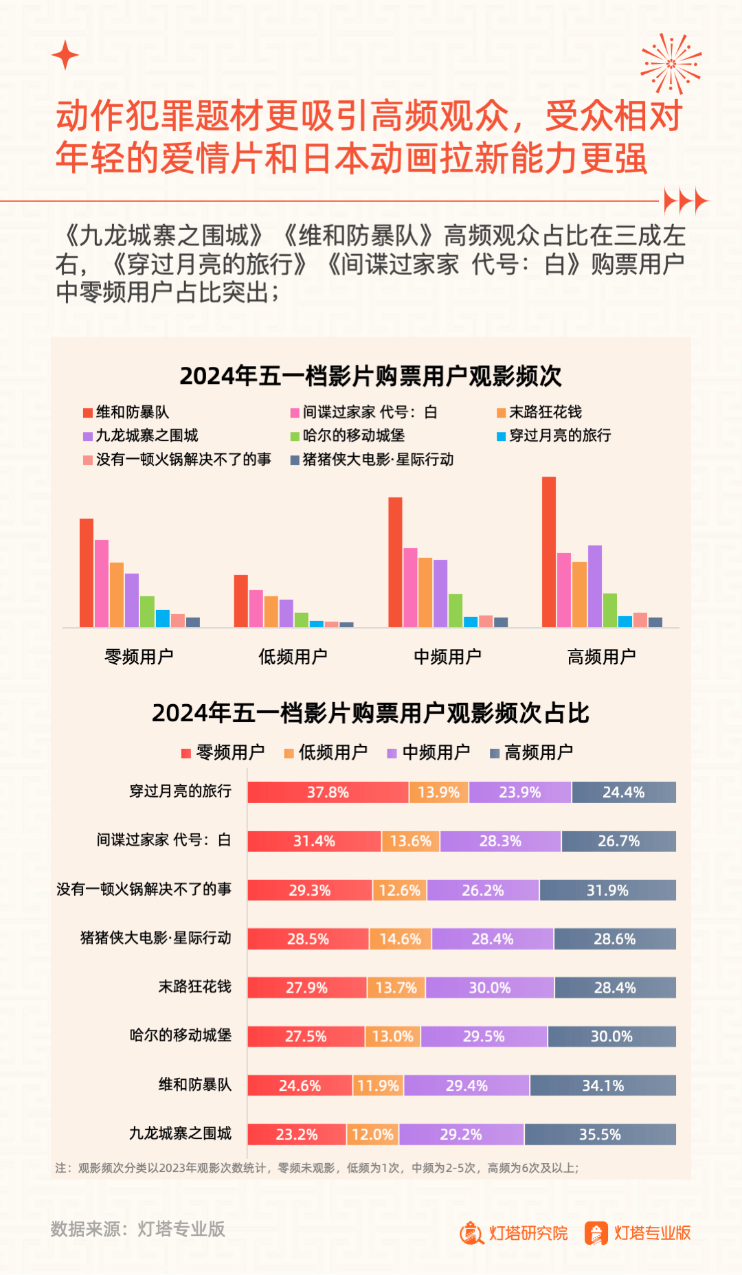 2024年5月6日,灯塔研究院发布《奋楫扬帆,赓续前行——2024年五一档市场洞察报告》,从市场大盘、竞争格局、单片分析和城市影城四大维度进行复盘。