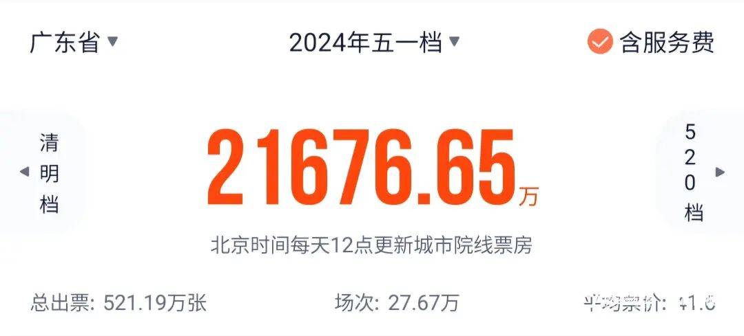 数据显示,今年五一档内总观影人数为3763.7万,总场次240.0万,刷新影史五一档场次纪录。城市观影热度上,广东省总票房超2.1亿元,总出票521.19万张,场次27.67万,平均票价为41.6元。江苏省总票房超1.5亿元,浙江省总票房超1.1亿元。
