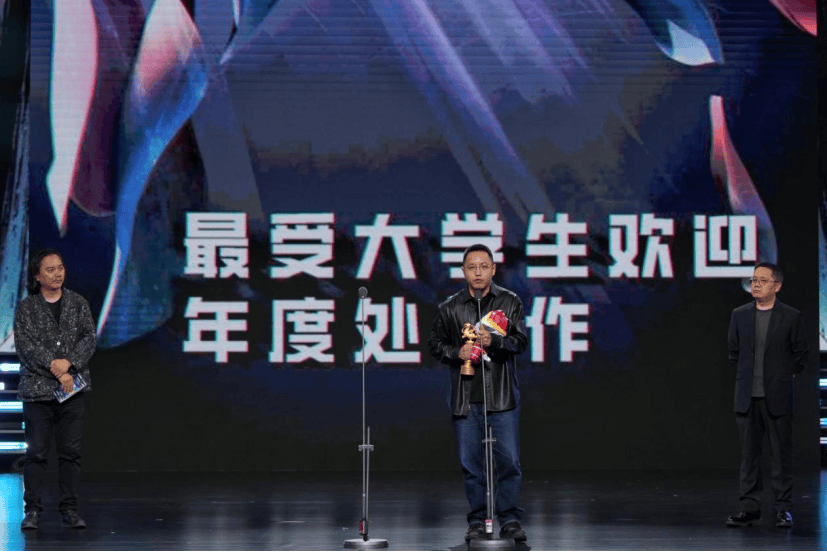 制片人严雪峰代表影片主创上台领受荣誉,他感谢大学生观众对影片的认可,并表示正是大家的支持激励着团队不断前进,未来,《封神》团队将力争以更高的水准把第二部、第三部影片呈现给大家。
