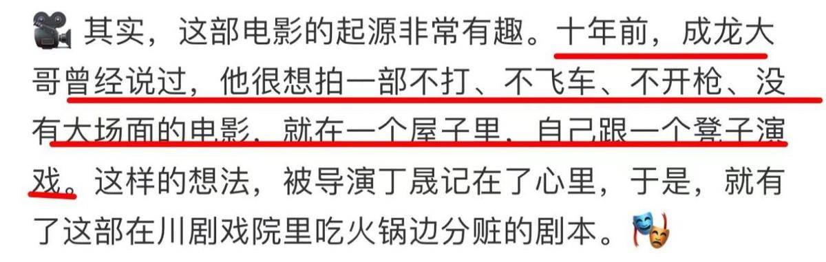 成龙大哥的一个构思,丁晟导演用了十年来打磨。