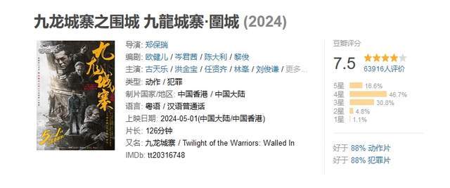 原标题:九龙城寨连续3天票房逆跌!五一国产片豆瓣第一高,越简单越藏拙