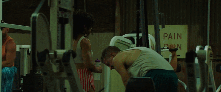 镜头不遮掩地在杰姬的健美身姿和卢出神迷恋的注视之间来回切换。