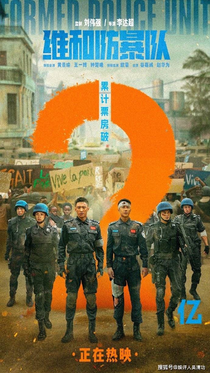 由刘伟强监制,李达超执导,黄景瑜、王一博、钟楚曦领衔主演,欧豪特别出演,朱亚文特邀出演,谷嘉诚、白那日苏等主演的电影《维和防暴队》,于5月1日上映,当天票房高达1.36亿。第二天,《维和防暴队》的票房高达9491万,连续两天成为单日票房冠军。