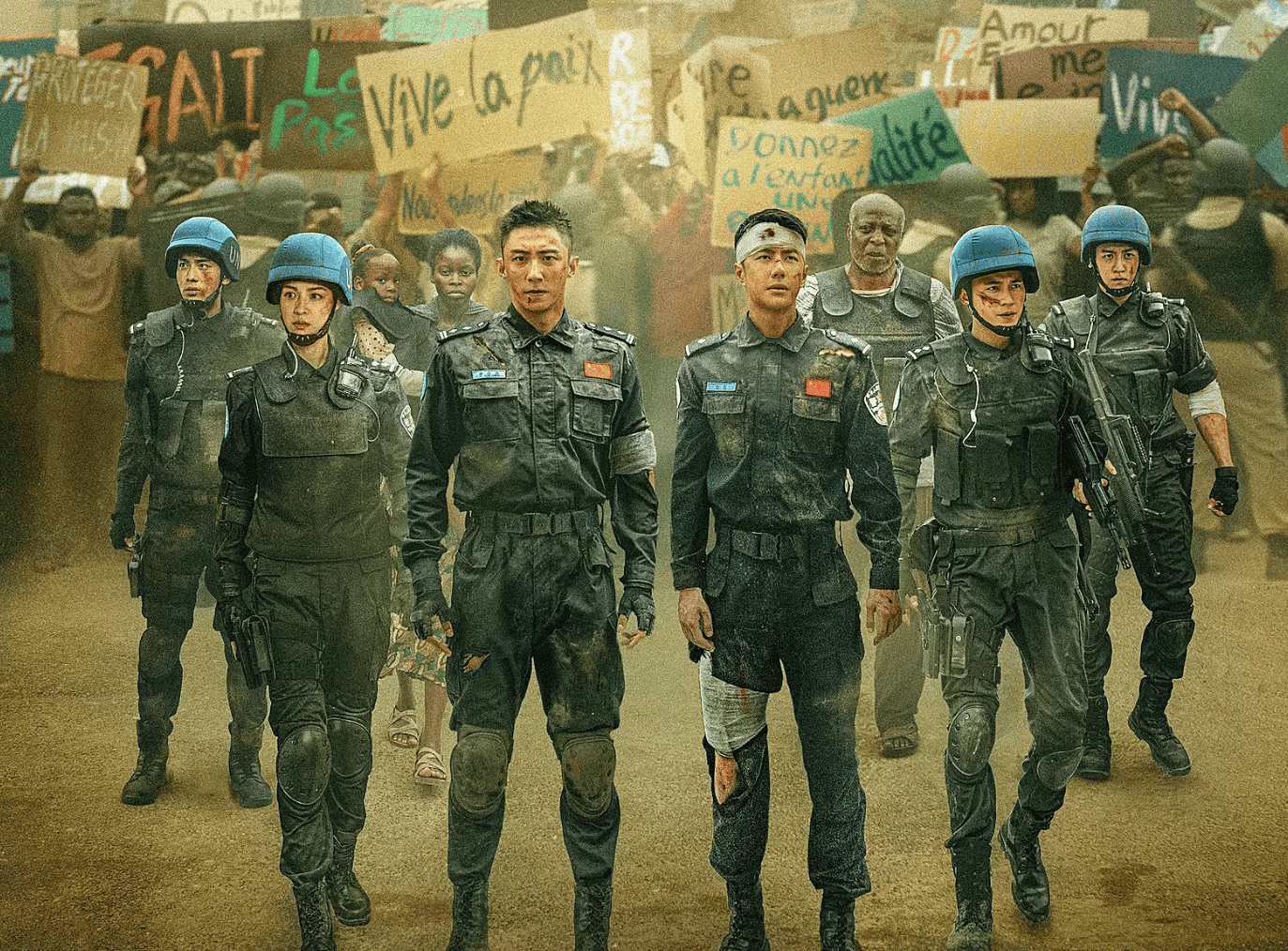 其实前面巡逻、教育、送水送食物等基本都是废戏,扁平化的角色塑造,靠这些细节的铺排撑不起来,与其这样,还不如只拍送证人到法院的全过程,在路上设置重重关卡和障碍,展现维和部队的突围过程,拍成动作类型片可能还更好一些。说到底,还是编剧和导演太贪了,一边是用多余、无用的戏份往主旋律和煽情靠,另一边也是在剧情注水撑时长,反正拍文戏比较省钱,节约下来的预算每个人都多分一点不香?就是苦了观众了,101分钟都觉得很冗长,不断看表。