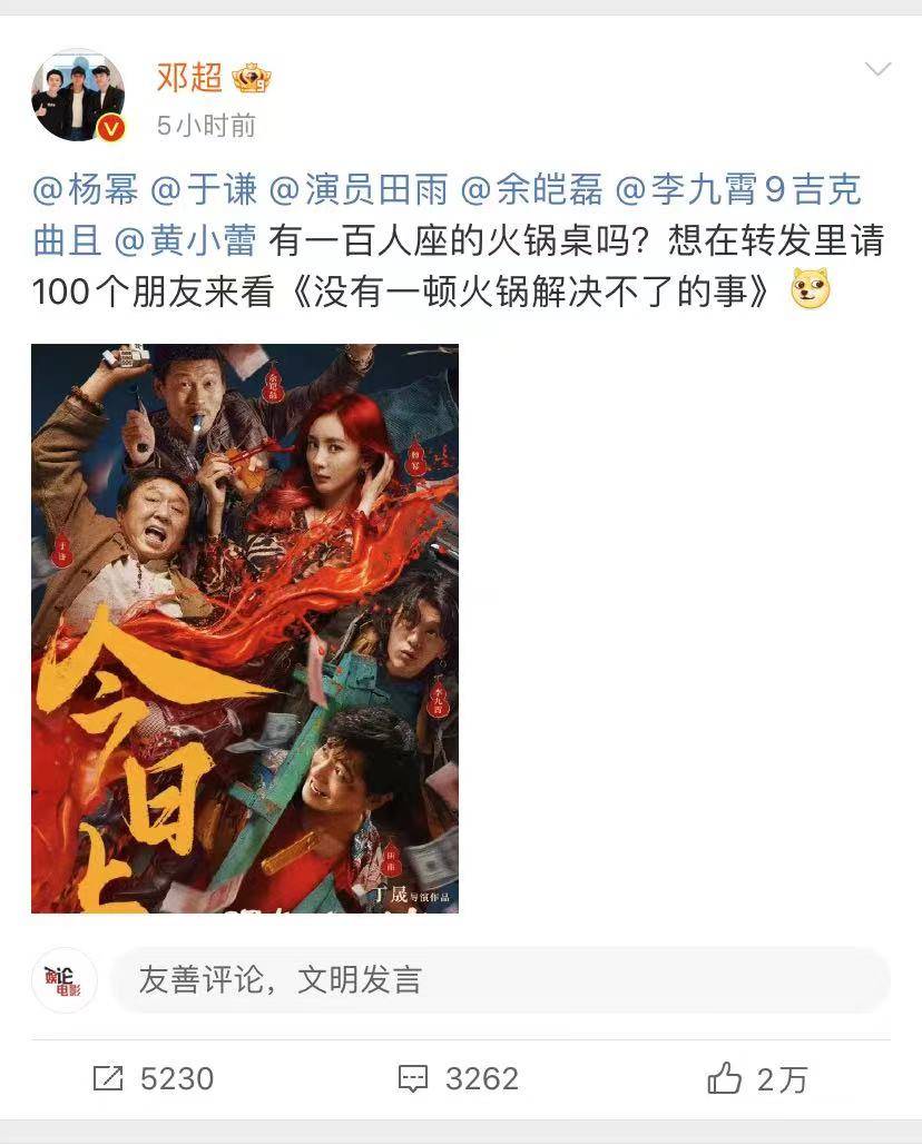 杨幂、于谦等人主演的《没有一顿火锅解决不了的事》也上映,排片占比很差,即使像杨幂这种顶流主演的电影也不是不如王一博的粉丝号召力高吧,票房还不到《维和防暴队》的零头,所以考验杨幂扛票房的机会到了。虽然杨幂是主演,但票房和她应该没多大关系,电影和电视剧不一样,顶流也未必能够扛票房,除非红得发紫的那种,一般的流量的演员都很难将烂片拿到10亿票房。