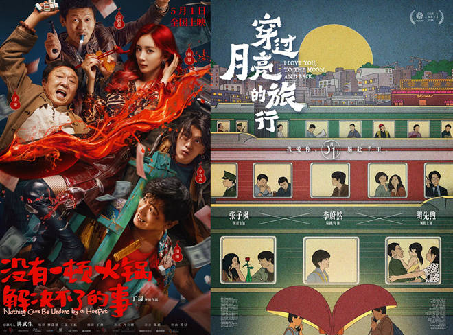 、主演的《穿过月亮的旅行》,、主演的《没有一顿火锅解决不了的事》《猪猪侠大电影·星际行动》分别暂列第六至第八。
