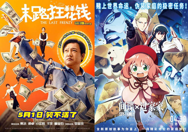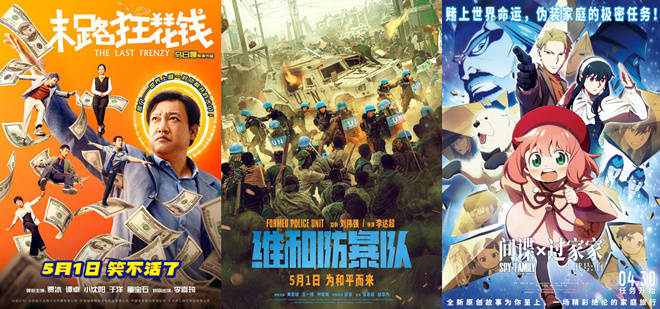 从上映时间来看,《间谍过家家代号:白》已于4月30日上映,另外6部影片《维和防暴队》《末路狂花钱》则于假期首日与观众见面。