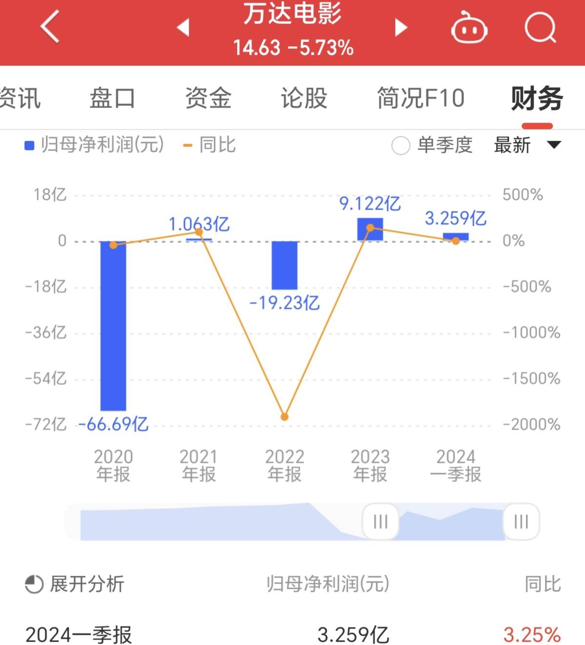 以影院业务为主的万达电影2024年第一季度营收、净利润都实现了同比微增,净利润3.26亿元,同比增长3%。