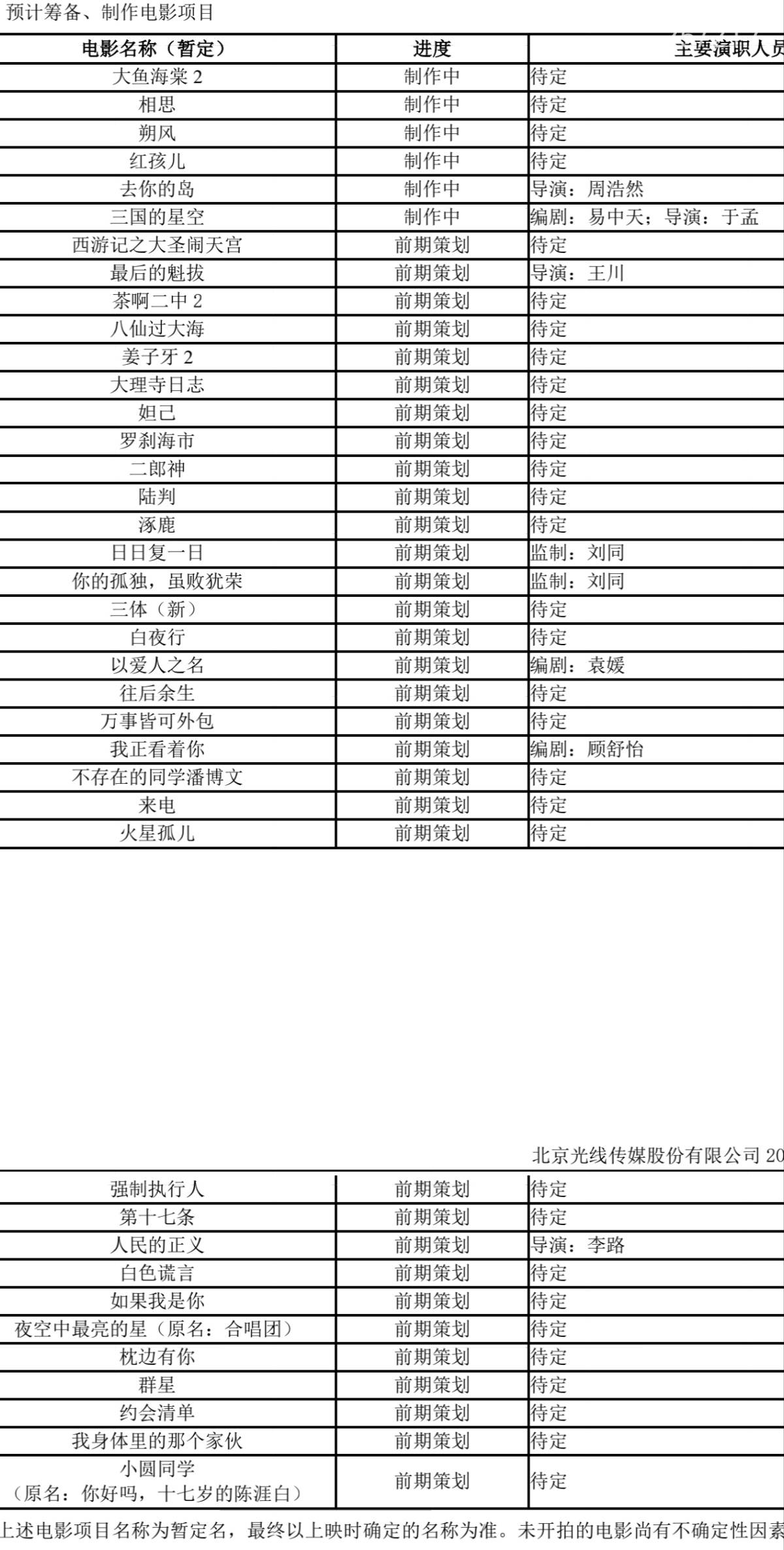 光线在影视公司中一直保持着竞争力,其在动画领域的布局遥遥领先,已储备十几部中国神话宇宙及其他类型的作品,包括《哪吒2》《姜子牙2》《大鱼海棠2》《茶啊二中2》《最后的魁拔》《妲己》《二郎神》《红孩儿》《罗刹海市》《八仙过大海》《三国的星空》《三国之赤壁之战》《相思》《朔风》等,这是未来最大的看点。