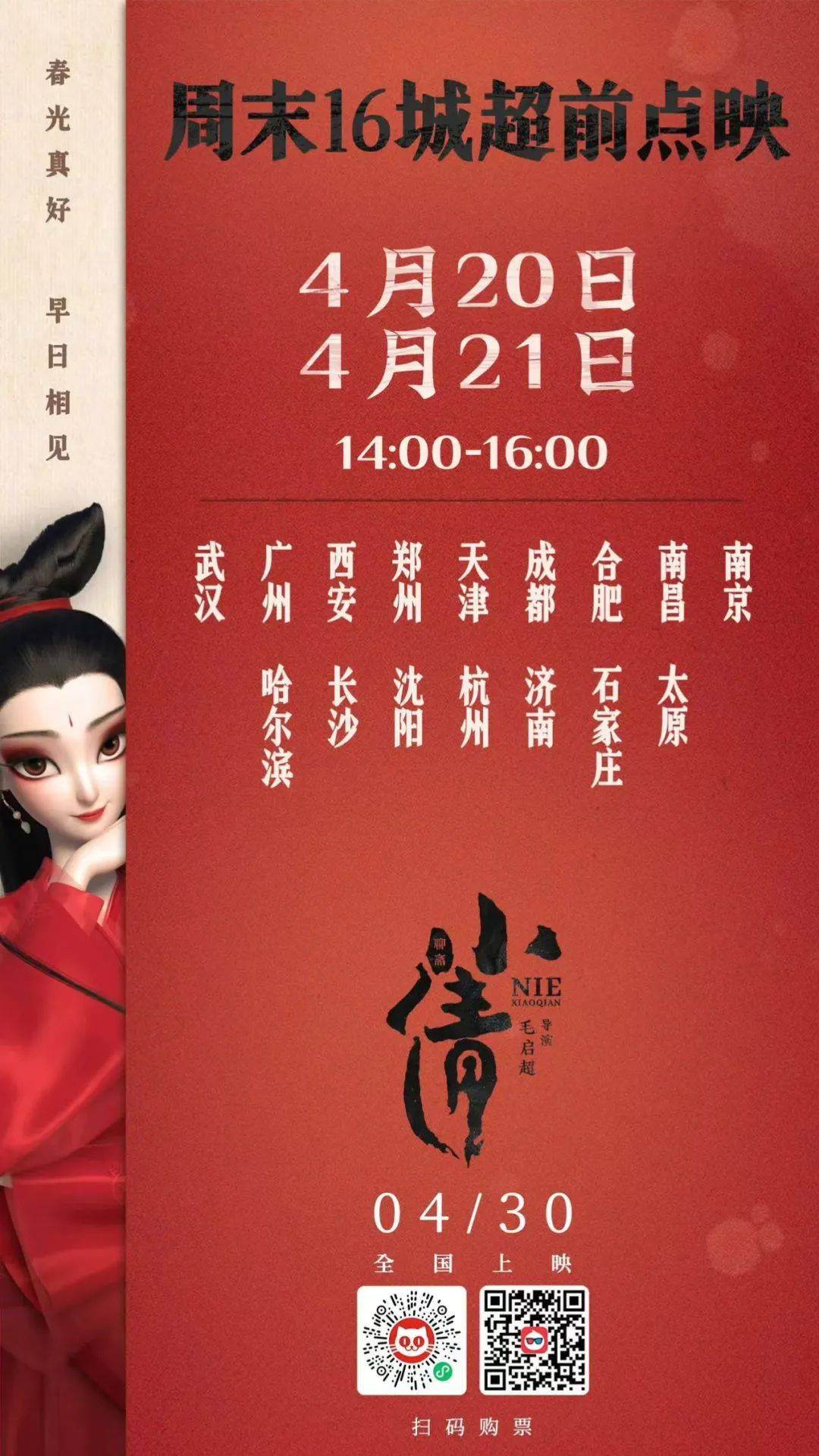 《小倩》在官宣定档当日就官宣了4月14日点映的消息。点映,可以说是这部影片为数不多的宣发动作。