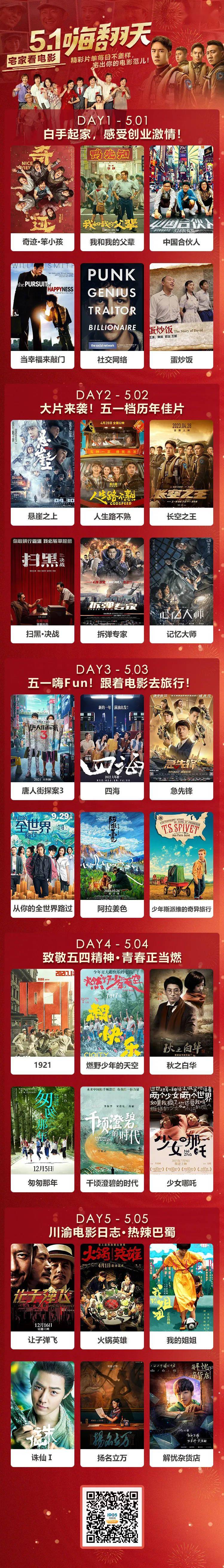 原标题:1905电影网五一假期超豪华片单来袭 每日不重样!