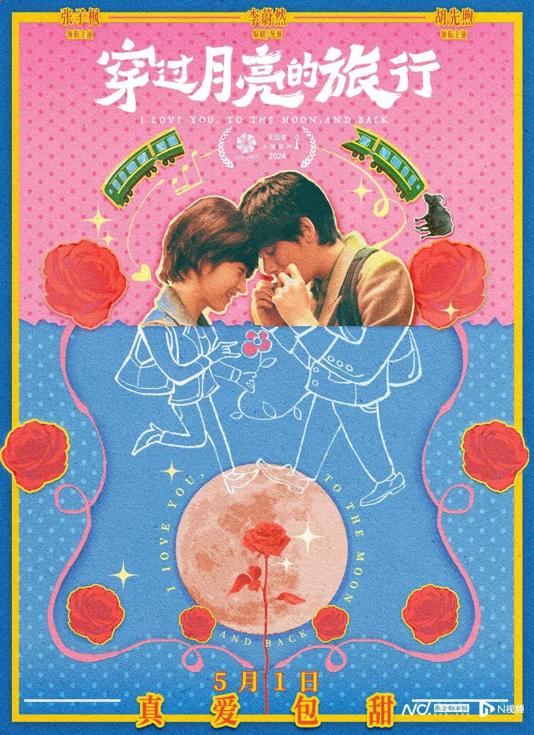 电影《穿过月亮的旅行》改编自著名作家迟子建的中篇小说《踏着月光的行板》,在广东取景,是广东省重点影片项目库扶持作品。张子枫与胡先煦在片中饰演分居两地的新婚夫妻林秀珊和王锐,这对生活在20世纪90年代的年轻夫妻饱尝异地恋的相思苦,每日都盼着能多见一次,因此当他们同时获得了一天假期,一场甜蜜又酸涩的“双向奔赴”就此展开。本片抓住了许多20世纪90年代的细节,各种怀旧的气息伴随着影像扑面而来。