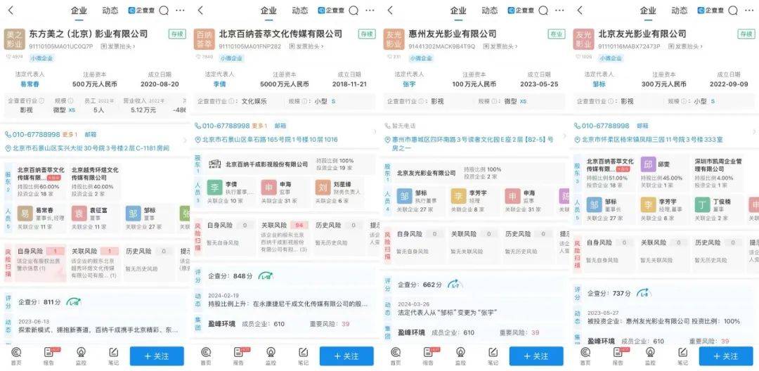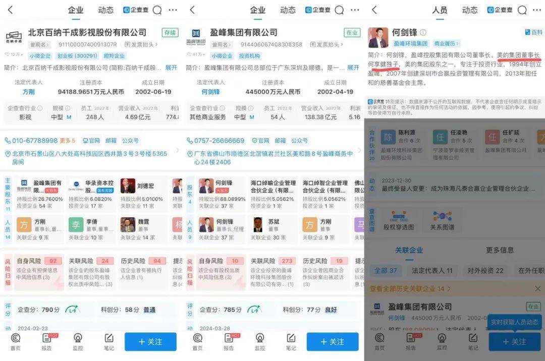 《穿过月亮的旅行》与《没有一顿火锅解决不了的事》背后的大资方都是百纳千成。两部电影的第一出品方分别为惠州友光影业、东方美之,都是百纳千成直接或间接控股的公司。