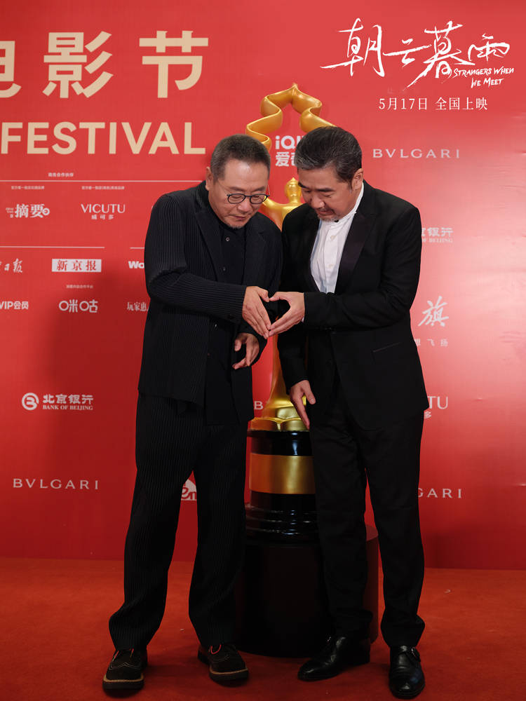 搜狐娱乐讯 4月26日,电影《朝云暮雨》导演张国立、领衔主演范伟出席第十四届北京国际电影节闭幕式暨颁奖典礼。红毯上,张国立和范伟合体比“心”,带着好“心”情共赴这场电影盛会。当晚的颁奖典礼上,范伟凭借老秦一角,获得第十四届北京国际电影节“天坛奖”最佳男主角,这也是他时隔七年再度获封天坛奖影帝。范伟对入狱27年的刑满释放人员老秦的精妙演绎,收获了本届天坛奖评委会与展映观众的一致认可,影帝殊荣可谓实至名归。
