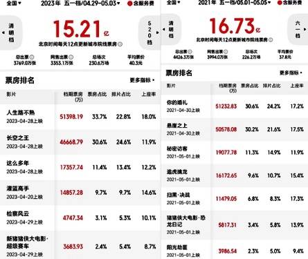 2023五一档,《人生路不熟》《长空之王》两部头部电影称霸,占去64%票房。