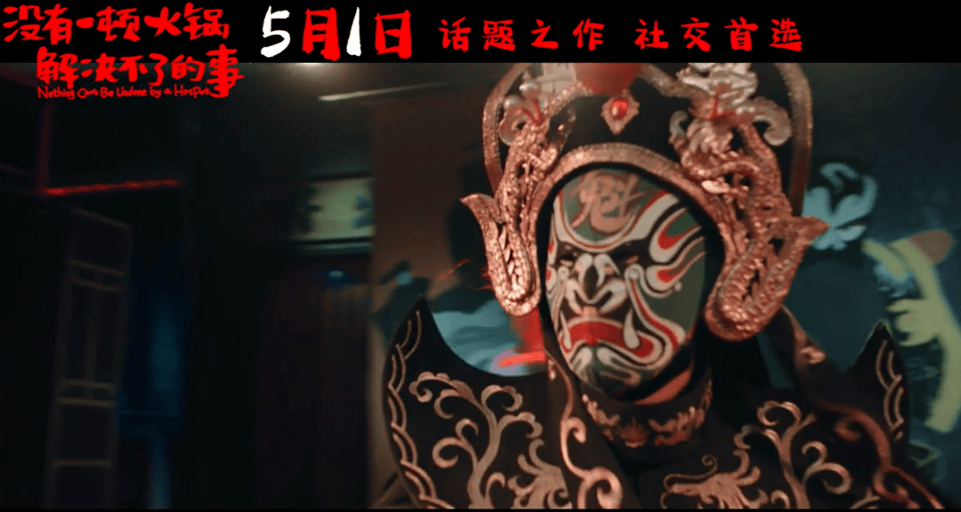 尤其是川剧人物,包括鼓上蚤时迁、包公、关公等经典戏曲角色,不断地破坏着「火锅现场」。