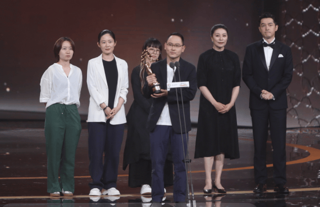 导演龙飞登台领奖调侃:“谢谢北影节,谢谢评委,刚才编剧说我上不了台,是不是打脸了。拿到这个奖比我自己拿奖高兴多了,这是对我们全组人的肯定。刚拍完影片我很忐忑,因为不想辜负全组人的辛苦付出,这个奖是对我们全组人莫大的肯定,感谢所有帮助这部戏的人。”