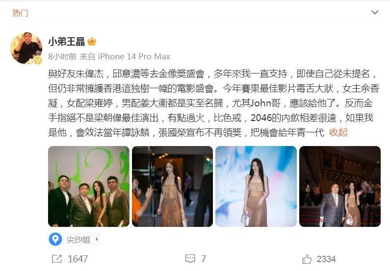 不只是内地影迷,当晚收看颁奖典礼现场直播的香港网友,也全都按捺不住,纷纷在社交平台上发声。