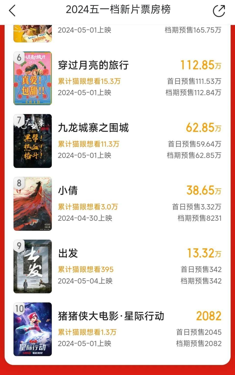 而目前电影的预售票房比较的温吞,还没有突破百万,只是比古天乐的新电影《九龙城寨之围城》要更好一些。