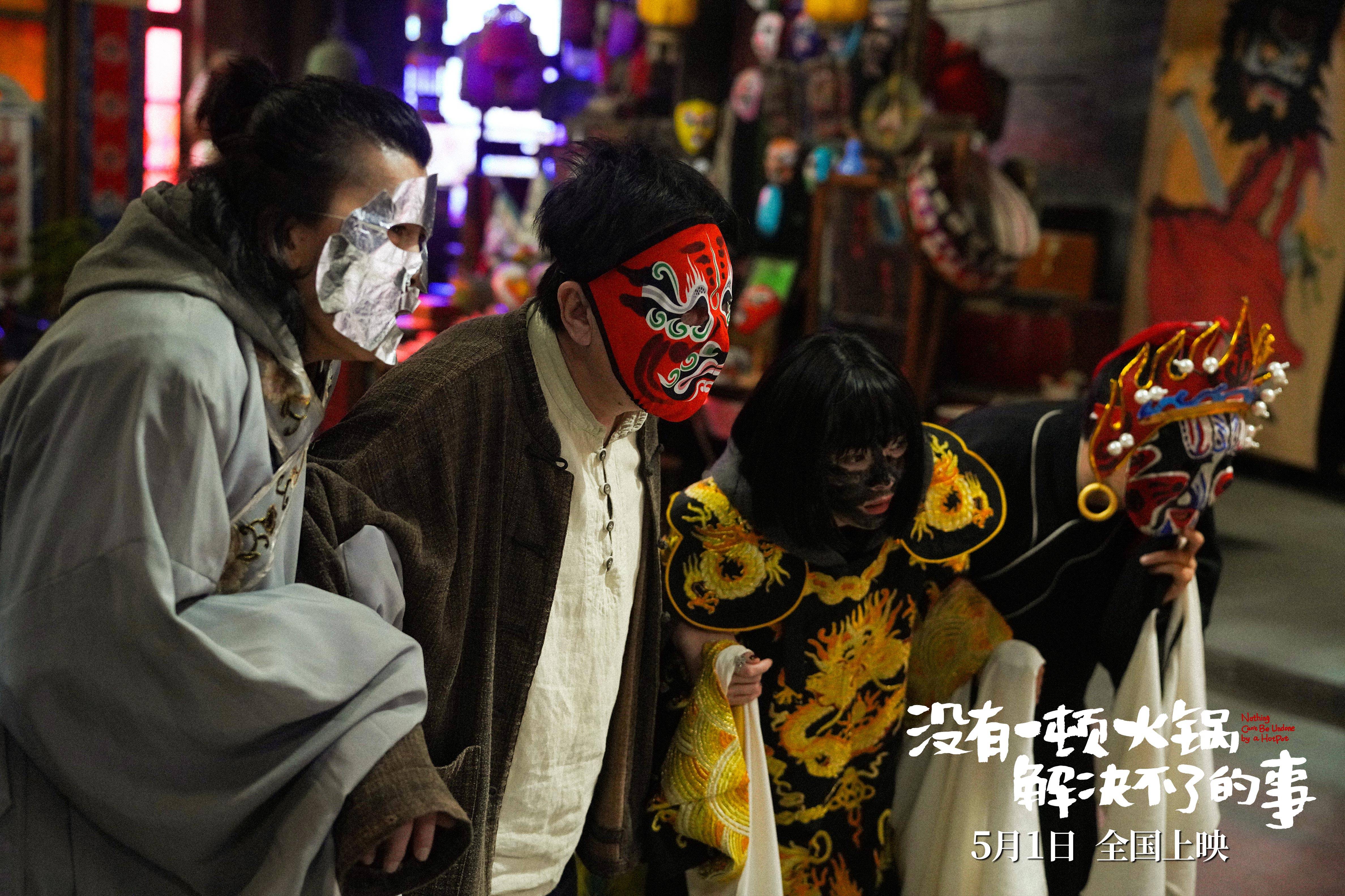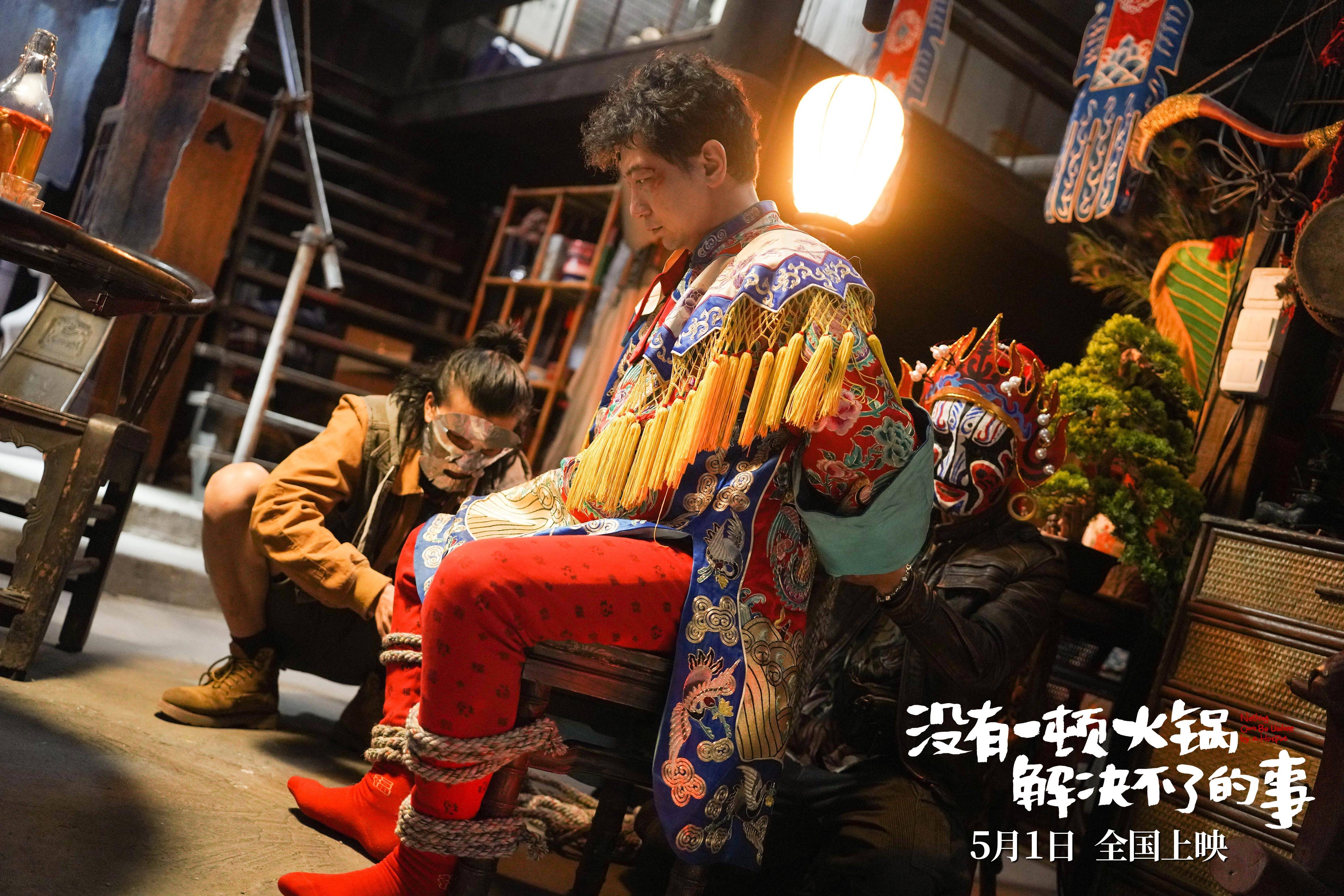 《没有一顿火锅解决不了的事》的主演杨幂评价这部电影:“这是一部非常黑色幽默的悬疑电影,充满着天马行空的想象。”作为一部以悬疑犯罪为基础的作品,“剧透”会严重影响观影体验,因此本片自定档以来,电影在剧情方面却一直严格保密,吊足观众的胃口。而在这次发布的终极预告中,伴随着几个川剧角色的唱念做打和“四贼行窃,盗命一条”“盗窃绑架,杀人分尸”等关键词的出现,一些之前从未曝光过的线索似乎露出端倪:幺鸡(杨幂 饰)、九饼(于谦 饰)、发财(余皑磊 饰)、七万(李九霄 饰)作为“雌雄大盗四人组”,组的到底是麻将局还是火锅局还是抢劫杀人分尸局?付主任(田雨 饰)为何上一秒出现在箱子里,下一秒又义正词严地控诉四人组的违法行为?
