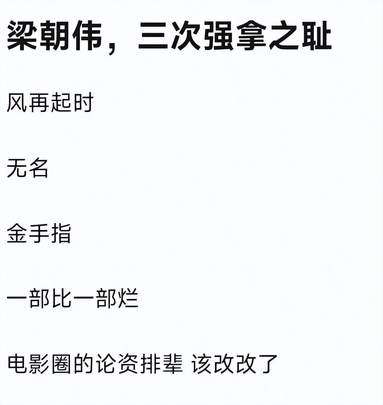 不仅如此,还有人直接列举出了梁朝伟之前的两次拿奖,认为与这次金像奖一样,都属于强捧之耻。