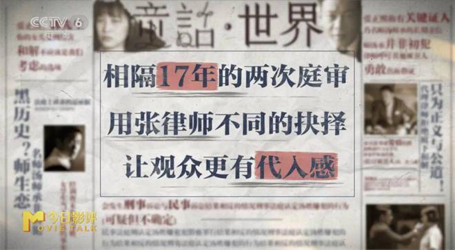 第一条主线是当他作为补习老师李康生这个角色的辩护律师的时候,他其实只站在了自己的职业操守或职业道德,把一个真正的犯罪行为包装成了一个有擦边球的一个婚外恋行为。