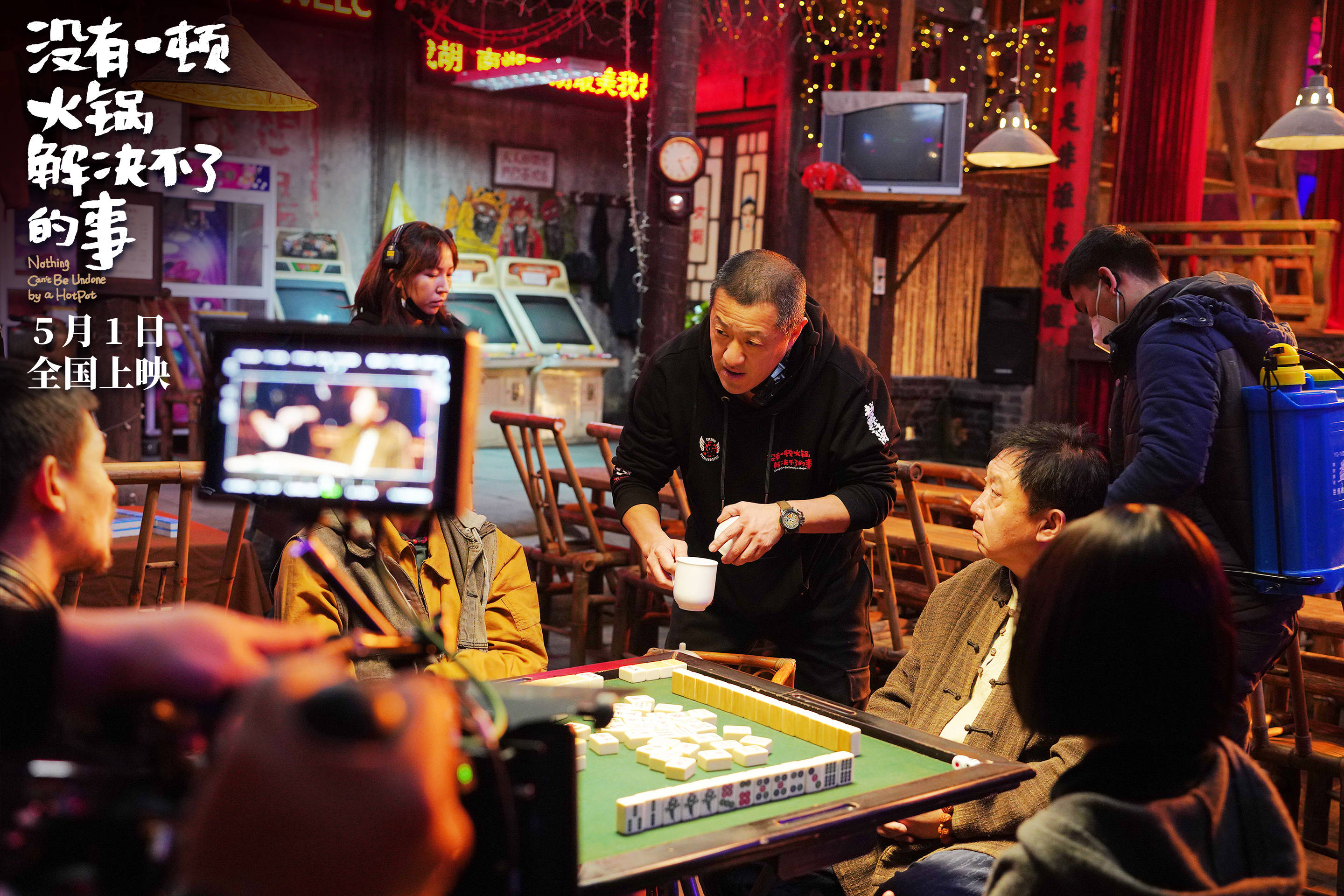 如此精雕细琢,得到的是一个跟现实一模一样的戏院,深入其中的人,能感受到扑面而来的市井文化氛围。这让观众仿佛跟几位主演一起吃火锅、看川剧、劫人劫财……不是在看电影,而是置身电影之中,可说是年度最零距离的一部作品。