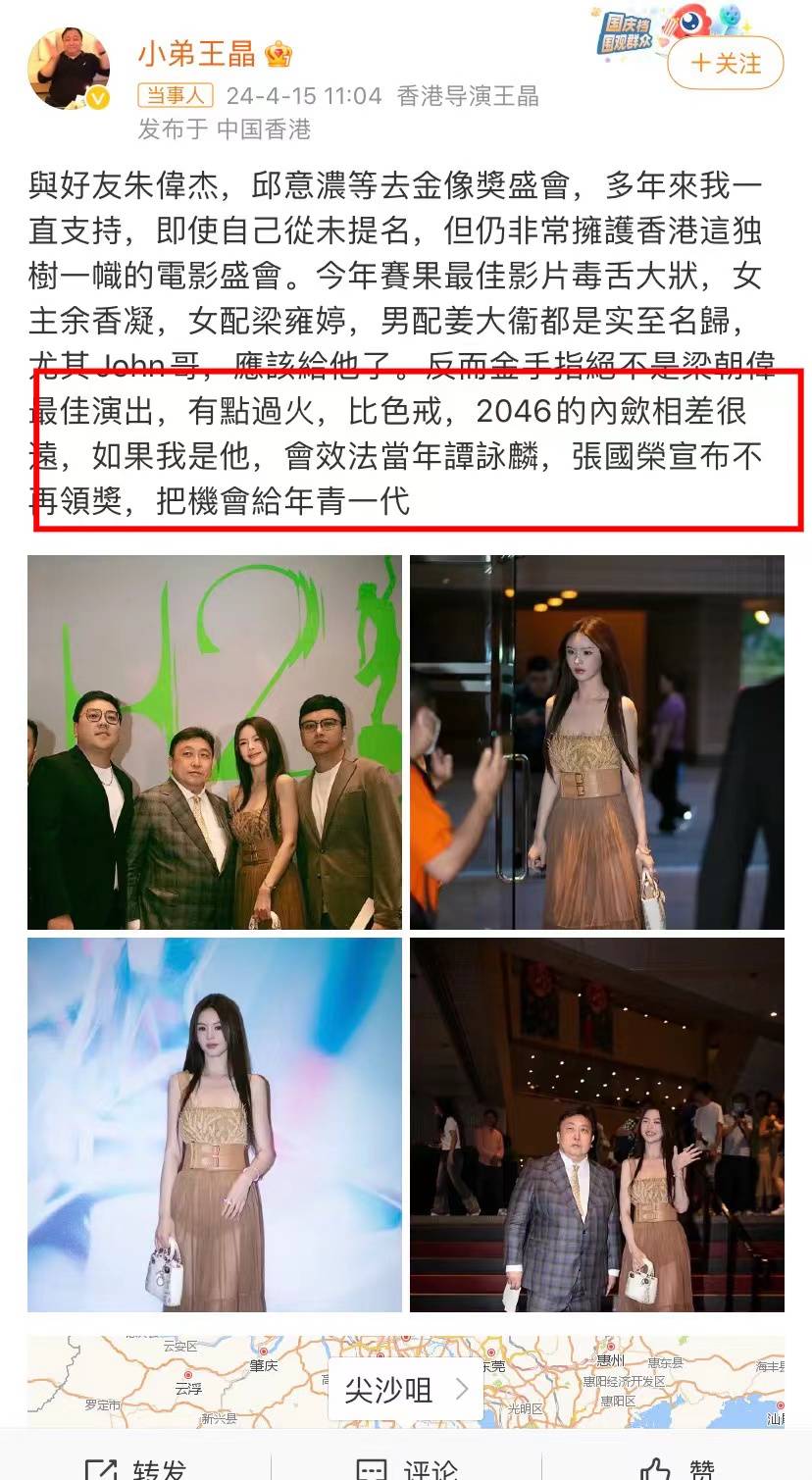王晶这样的说法,直接不尊重金像奖评委,太儿戏。金像奖需要梁朝伟,梁朝伟可能不需要金像奖,毕竟他已经获得戛纳国际电影节最佳男主角和威尼斯国际电影节终身成就奖。