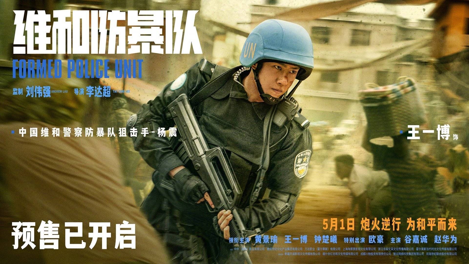 电影《维和防暴队》由刘伟强监制、李达超执导,黄景瑜、王一博、钟楚曦领衔主演,欧豪特别出演,朱亚文特邀出演,谷嘉诚、赵华为主演,印小天友情出演,由中中(北京)影业有限公司、捷成世纪文化产业集团有限公司、万达影业(霍尔果斯)有限公司、上海淘票票影视文化有限公司、浙江东阳文采文化传播有限公司、霍尔果斯当代时光文化传媒有限公司出品,将于5月1日全国上映。