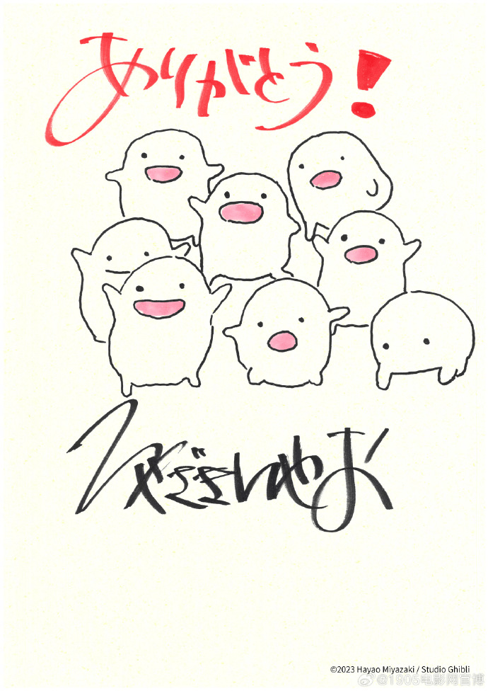 宫崎骏新作《你想活出怎样的人生》正在热映中,目前票房累计突破5.7亿。影片上映以来,哇啦哇啦就受到了中国观众的喜爱,宫崎骏在了解之后送上亲笔手绘的“哇啦哇啦”海报,灵动的哇啦哇啦跃然纸上,每个都顶着大大的笑脸,海报上方还有大大的“感谢”,温暖治愈。