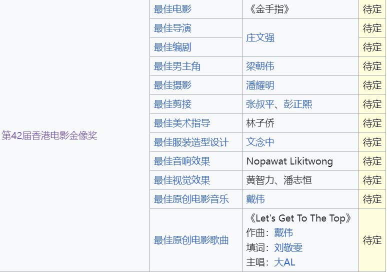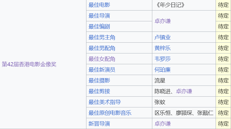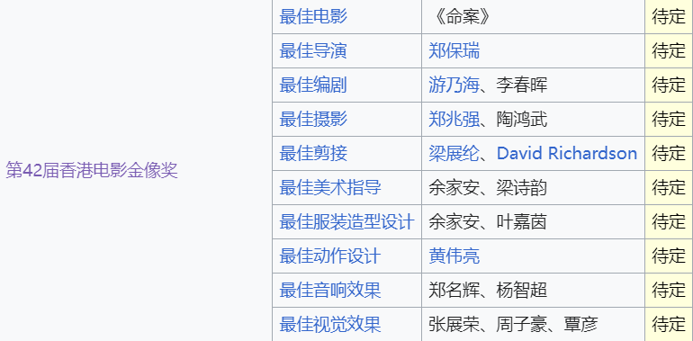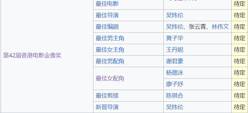 第42届香港电影金像奖入围名单