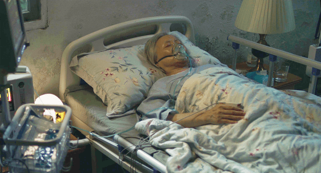 还有一场戏,外婆难以忍受痛苦,拼尽力气拿掉氧气面罩想要一死了之。