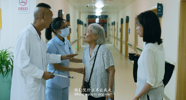 得知医生不让自己出院时,老太太像个受了委屈的小孩,发泄自己的愤怒: