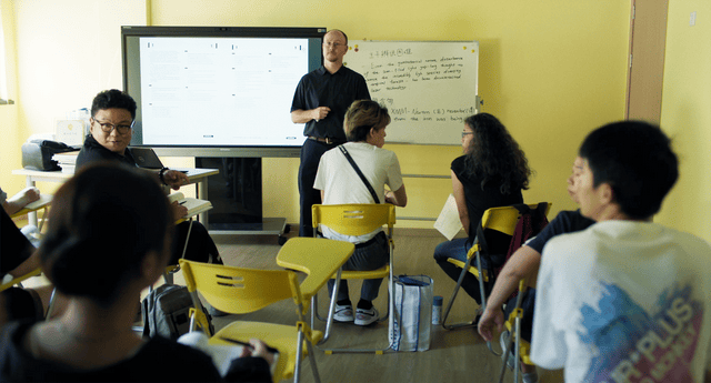 两人合伙开了一家留学机构,莱恩也在这里担任授课老师。